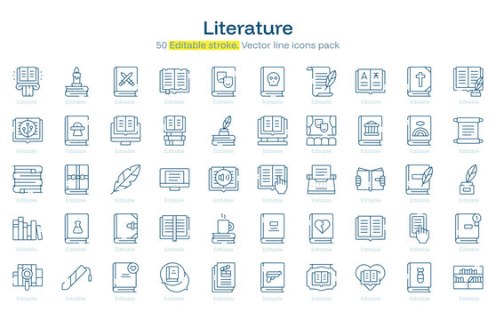 Literature line icon pack. Literature Stroke icon set. Editable Stroke icon