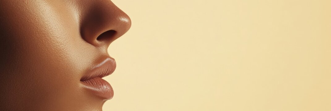 A striking close-up of luscious pink lips on a gentle pink background, ideal for beauty and makeup concepts that embody charm, femininity, and stylish creativity.