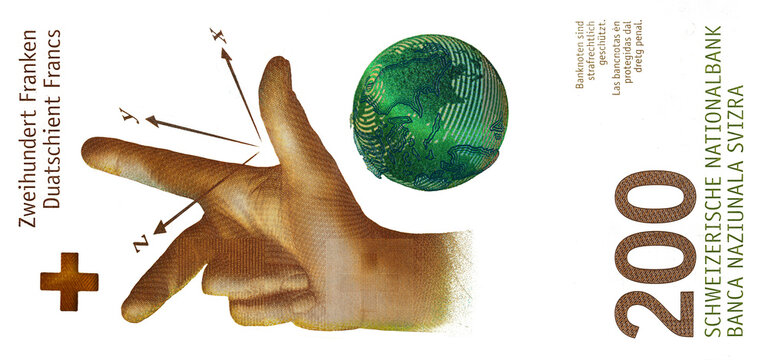 Closeup of 200 Swiss franc banknote.  Elements for design purpose