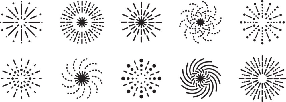 firework happy new year celebration congratulations party minimal geometric line graphic design abstract vector element illustration art flat set
