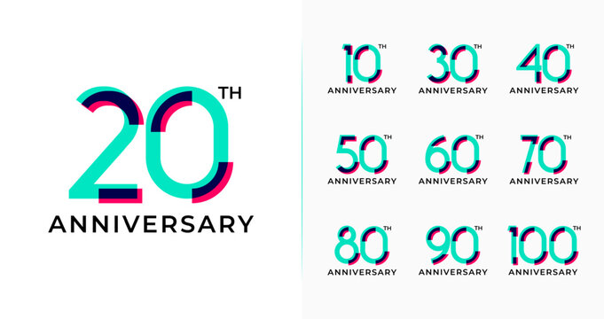 Overlapping anniversary logo collections. Birthday number with colorful and geometric shape concept