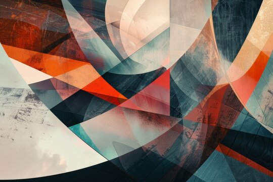 A dynamic abstract painting featuring a multitude of colors and various geometric shapes, A surreal blend of geometric shapes and angles