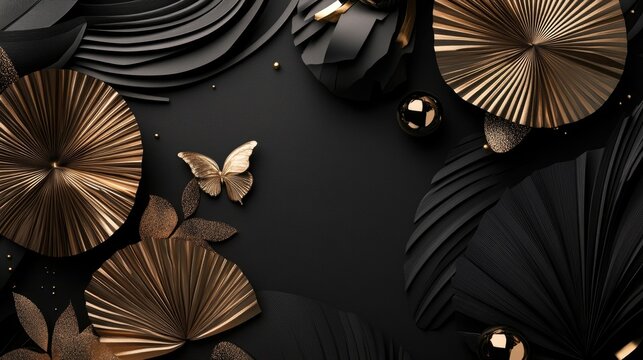 Luxury beige art background with butterflies hand drawn in gold art line style. Animalistic vector banner for decoration, wallpaper, print, textile, interior design.