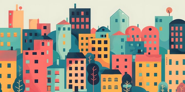 Colorful Cityscape Illustration With Buildings And Trees