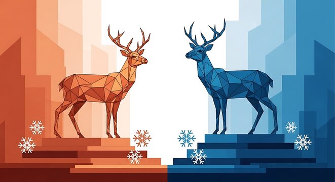 A geometric illustration of a deer running, with angular lines and earthy tones creating a minimalist style