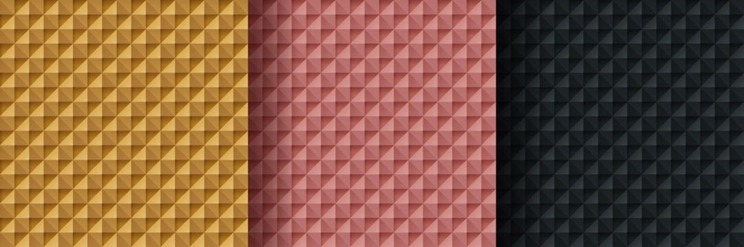Set of golden, rose gold and black abstract geometric shape pattern, Luxury 3D triangles pattern background. Can use for cover, artwork, print ad, poster, web banner. Simple and minimal. Vector EPS10.