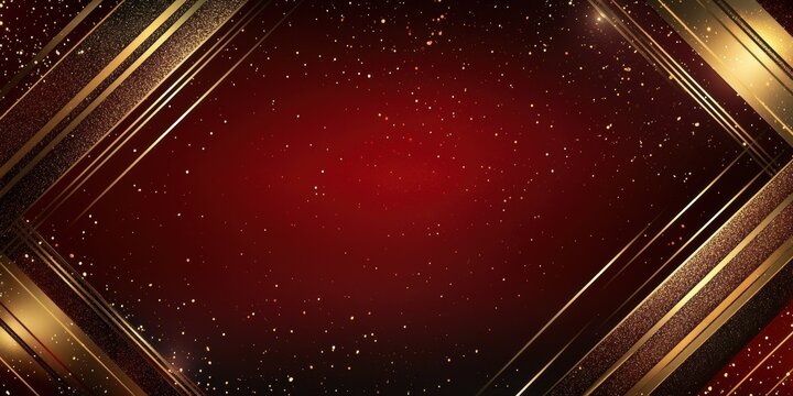 Elegant red and gold background with sparkling particles and geometric lines for festive celebrations, invitations, or luxury designs