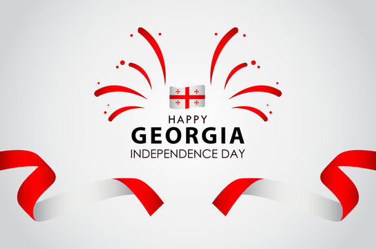 Georgia flag ribbon greeting card, banner background with national flag template for independence day