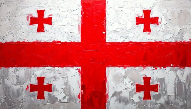 Waving Georgia flag, red crosses on white backdrop, a symbol of patriotism and national pride, country emblem