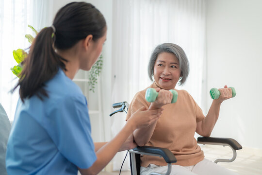 Elderly care and healthcare service.Wooden blocks with healthcare-related icons are stacked in the foreground, symbolizing medical care and support, while an elderly person in a wheelchair background.