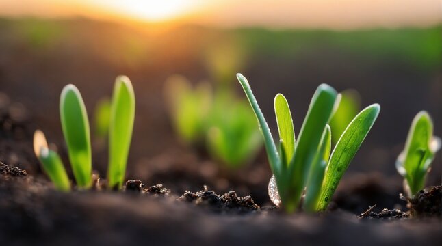 A Close-Up View of Dew-Fresh Sprouts at Dawn