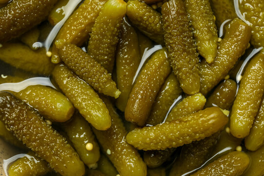 Pickled gherkins cucumbers top view