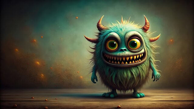 Whimsical and spooky monster drawing on background, monster, whimsical, spooky, cute, cartoon, playful, character,, Halloween