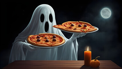 Cartoon Ghosts with Halloween Costumes and Pumpkins.