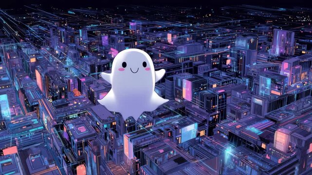 A ghostly Halloween character with glowing eyes, used as a festive decoration for October celebrations