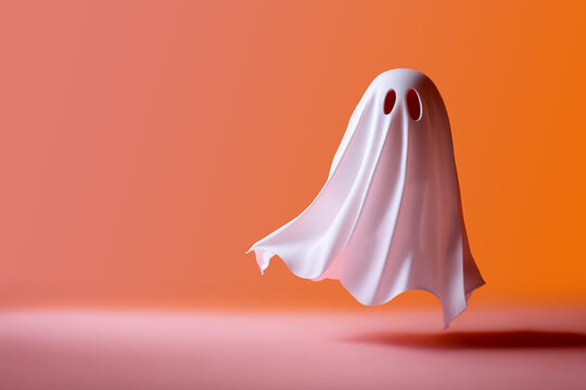 Cute friendly halloween ghost on a pastel background. Generative ai