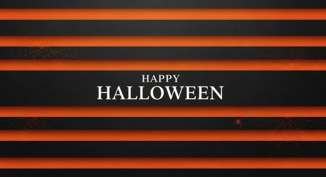 Happy Halloween" festive graphic with bold orange and black stripes, creating a dynamic seasonal background for autumn celebrations and holiday greetings