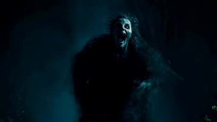 Creepy nightmare jumpscare with a ghostly figure eerily surging forward