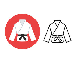 Dragon wear yudo suits. Japan Martial Arts Judo Aikido Dojo Budo Clipart Line Art Vector Illustration. Mythical creature garment uniform for oriental combat practice.