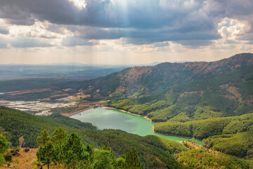 Irrigation lake in the valley under Chu Nam mountain in Pleiku, Gia Lai, Vietnam