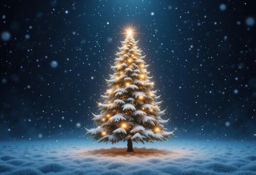 A subtly animated GIF of a Christmas tree with twinkling lights and gently falling snow.