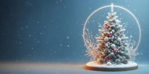 Snowy Christmas tree against blue background. Innovative page design