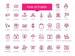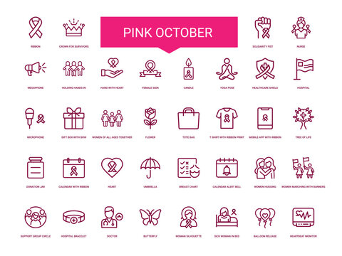 collection pink october breast cancer awareness icons, microphone hospital gift healthcare
