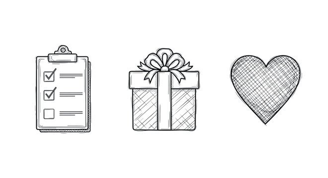 Checklist with completed tasks and a wrapped gift box with a bow. Ideal for productivity, task completion, reward system, goal achievement, project planning, recognition, and celebration. Line