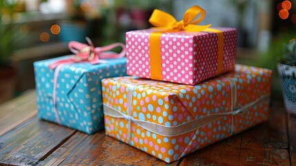 beautifully decorated Merry Christmas table featuring gift boxes presents wrapped red ribbons letters desk warehouse representing joy shipping holiday delivery services box background shopping sale