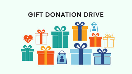 Colorful Gift Boxes in a Gift Donation Drive for Charity Awareness, Community Events, Fundraising Campaigns, and Nonprofit Initiatives