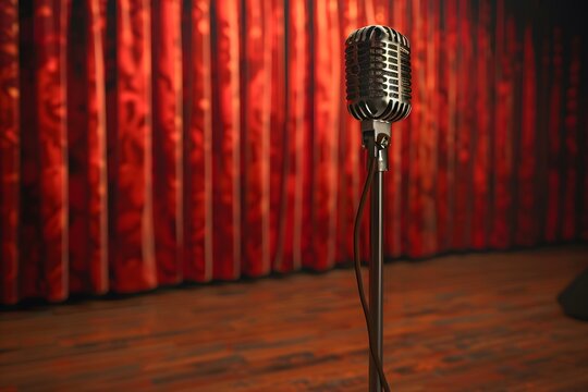 Microphone with bokeh light background, stand up comedy show, karaoke or singing contest, background for poster design, open mic and jokes show