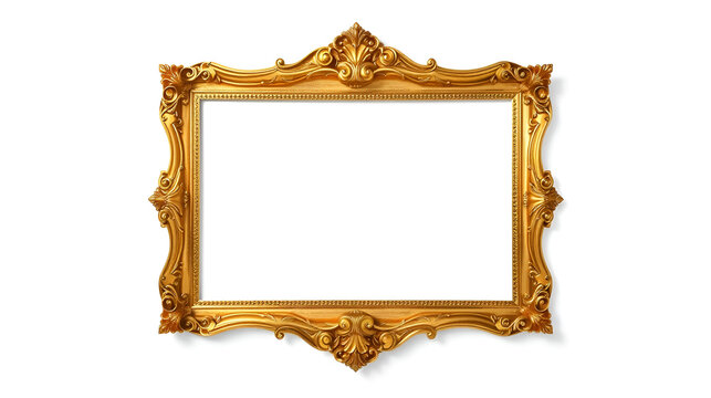 Big and Beautiful Retro Gold Frame Adorned in Aged Gilt. Isolated on White