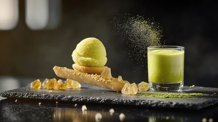 Exquisite modern dessert arrangement with passion fruit accents