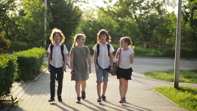 Group of Smiling Students Are Talking To Each Other During The School Break.