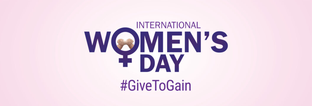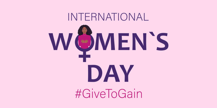 Give To Gain - International women's day concept poster. Woman sign illustration background. 2026 women's day campaign theme - #GiveToGain