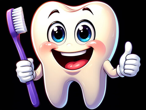 Smiling cartoon tooth holding toothbrush and giving thumbs up