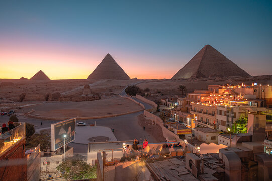 Beautiful View of The Great Pyramids of Giza at Sunset