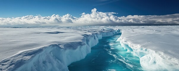 Stunning Arctic landscape featuring a deep crack in the ice sheet.
