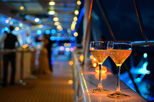 Exclusive cocktail party on a cruise ship deck, under the stars