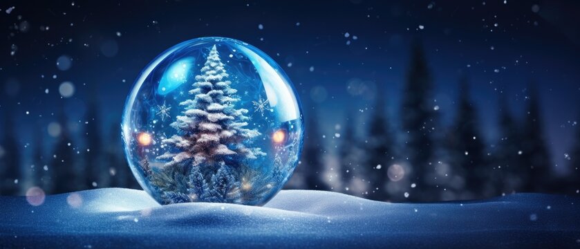 shiny ornament with christmas tree background with snow Generative AI