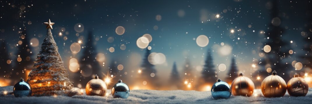 christmas background with baubles Blurred Shiny Lights banner