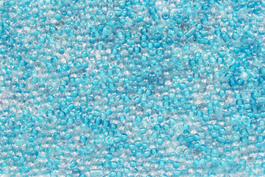 Beautiful opalescent glass beads closeup on black soft velvet background, abstract blur background