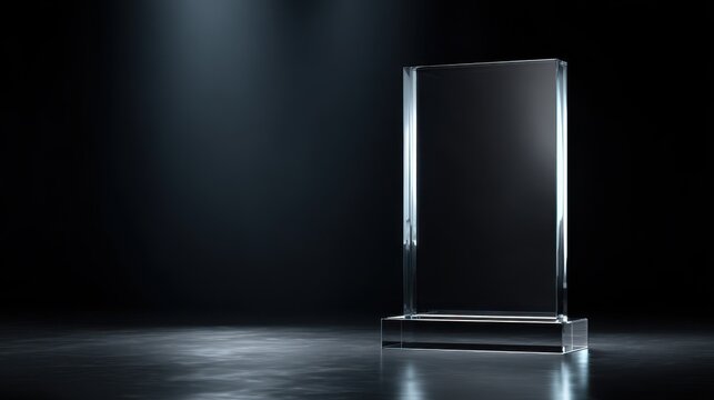 Stunning photo of blank square glass trophy mockup, 3d rendering. Empty acrylic award design mock up. Transparent realistic crystal prize plate template. Premium first place.