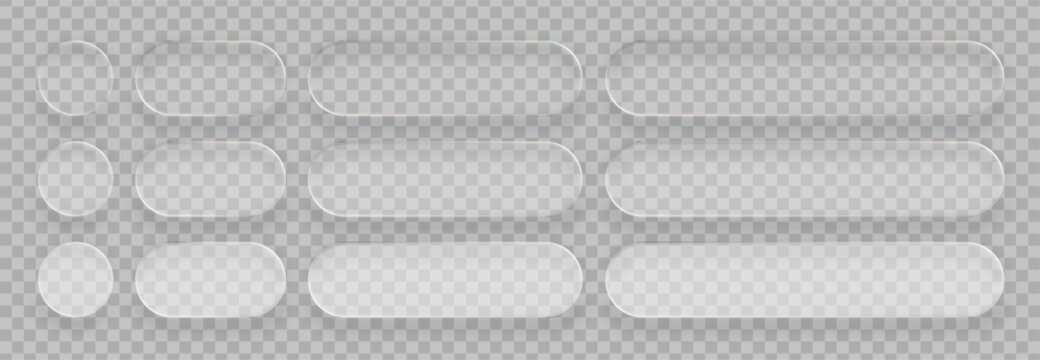 Set Vector Transparent Glass Buttons. UI UX Glass Screen of Mobile Device. Smartphone Interface Design. Collection Design Elements for Application Phone, Game Menu and Website. Transparent Background