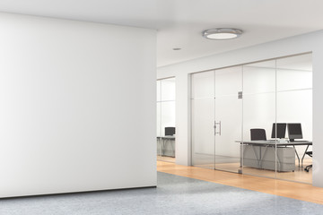 Blank wall in office interior.