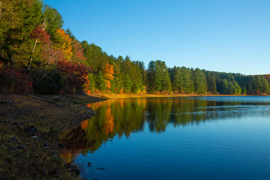 Placid fall scene at Buckingham Reservoir in Glastonbury, Connecticut.