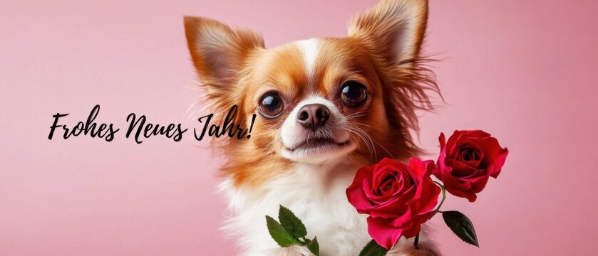 Niedlicher Chihuahua mit Rosen zum Frohes Neues Jahr
