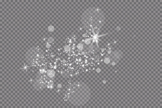 Doted and confetti golden glitter on transparent background. Shiny glittering dust. Gold glitter sparkle confetti that floats down falling. Vector illustration.