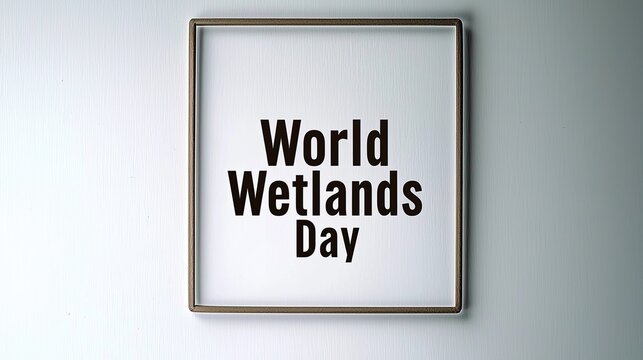 A framed display featuring the text "World Wetlands Day," promoting environmental awareness.