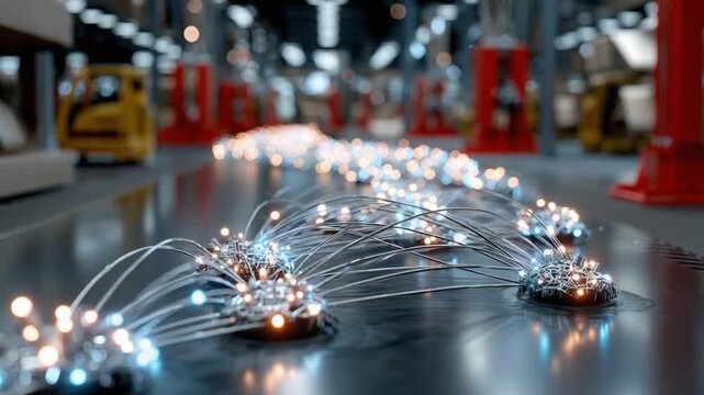 Illuminated Fiber Optic Cables A HighTech Network of Light Transmitting Data Ideal for Telecommunications Internet Connectivity and Modern Technology Visuals.